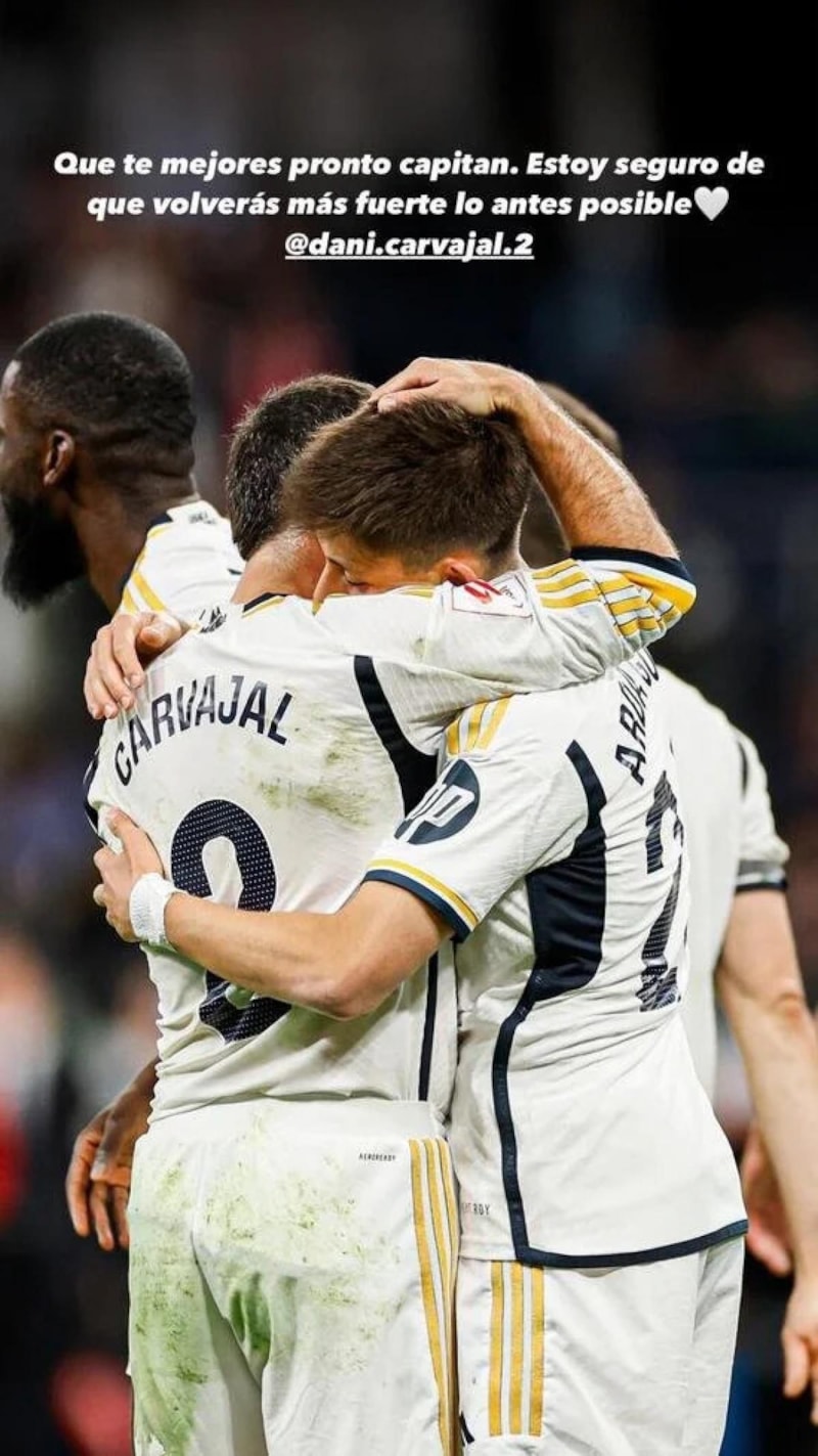 Arda Güler, takım kaptanı Carvajal'in sakatlığına kayıtsız kalmadı. Sosyal medya hesabından Carvajal ile fotoğrafını paylaşan milli futbolcu şunları söyledi: