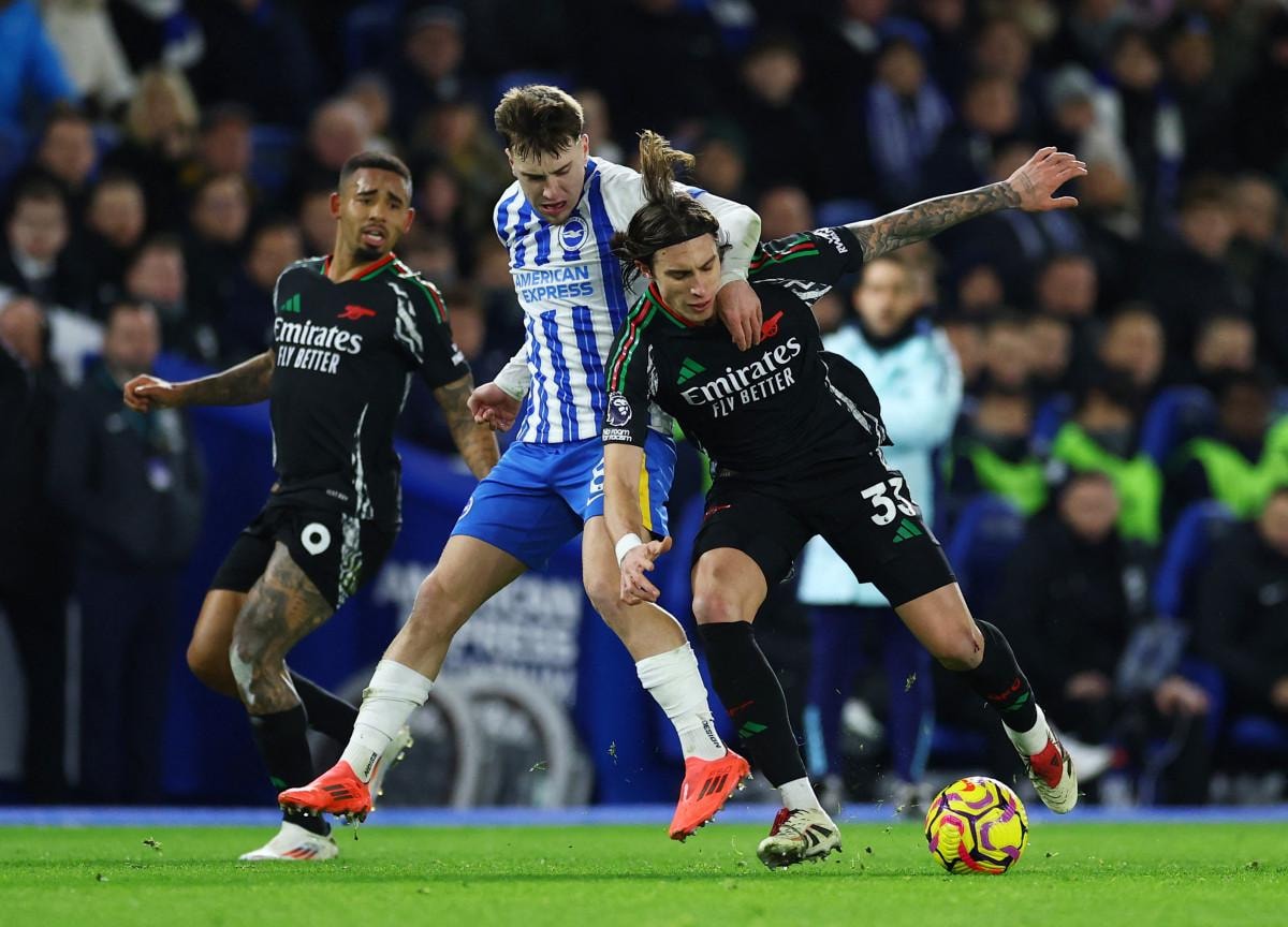 Arsenal, 16. dakikada genç yeteneği Ethan Nwaneri'nin golüyle öne geçti. Brighton, 61. dakikada Joao Pedro'nun penaltı golüyle eşitliği sağladı.