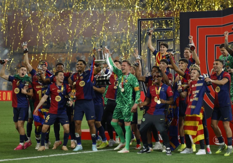 Finalde Real Madrid'i 3-2 yenerek İspanya Kral Kupası'nı müzesine götüren Barcelona, LaLiga'da da rakipleriyle arasındaki puan farkını korudu.
