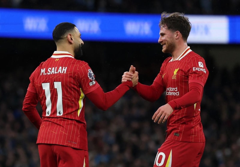Premier Lig lideri Liverpool, deplasmanda son şampiyon Manchester City'yi Mohamed Salah ve Dominik Szoboszlai'nin golleriyle 2-0 mağlup etti.