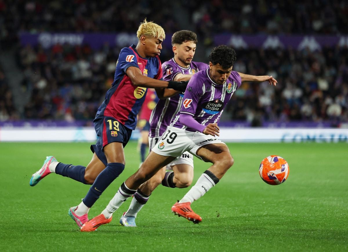 Maç fazlası bulunan 79 puanlı Barcelona, Real Madrid'in 7 puan önünde liderliğini sürdürürken, Valladolid 16 puanla 20. ve son sırada yer aldı.