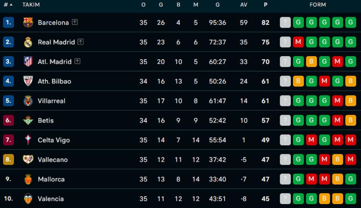 Bu sonucun ardından Barcelona, son 3 hafta öncesi ligde 82 puana yükseldi. Real Madrid, 75 puanda kaldı.