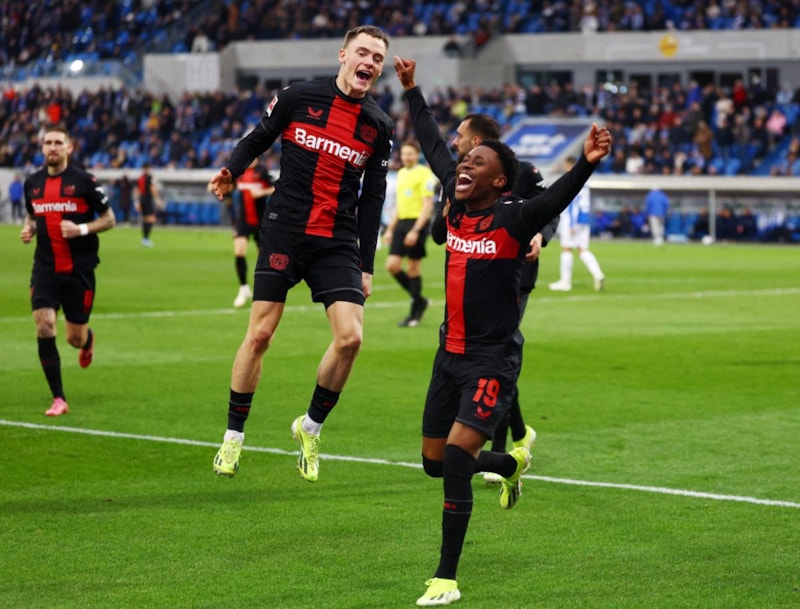 Leverkusen'e galibiyeti getiren golleri 33 ve 52. dakikalarda Nathan Tella attı.