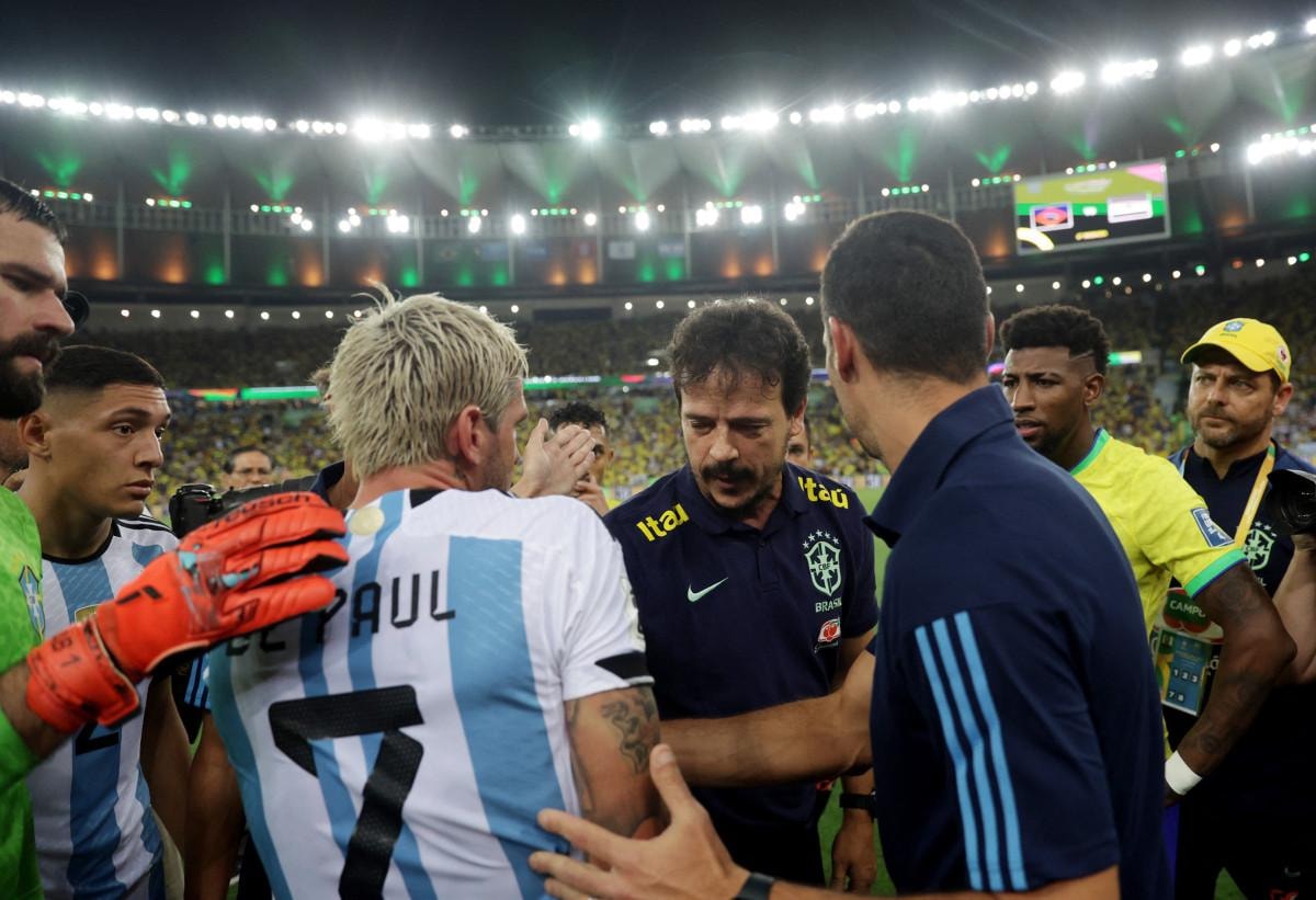 Arjantin Milli Takımı kalecisi Emiliano Martinez'in Arjantinli taraftarlara sert müdahale eden polisleri durdurmaya çalıştığı arbede devam ederken takım kaptanı Lionel Messi, arkadaşlarıyla birlikte soyunma odasına gitti. Arjantin'in 22 dakika sonra sahaya geri dönmesiyle başlama vuruşu yapıldı.