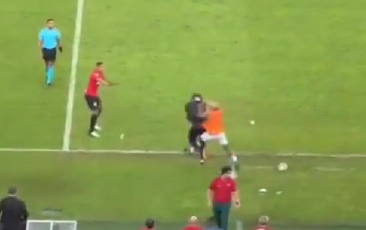 Son dakikada gelen galibiyet golüyle büyük bir coşku yaşayan Goianiense basın sorumlusunu Felipe Melo, yere itti.