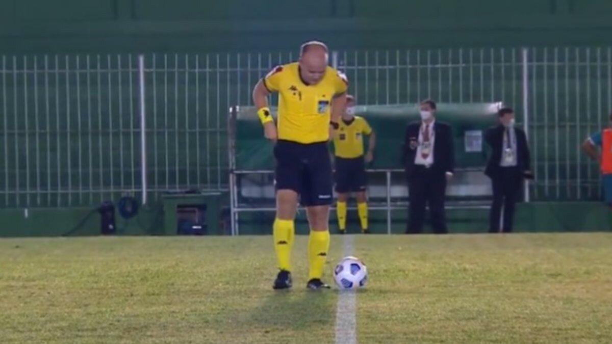Mücadelenin hakemi Denis Ribeiro Serafim, başlama düdüğünden önce 'vakit kalmadığı için' oldukça rahat bir şekilde sahanın ortasında altına işedi.