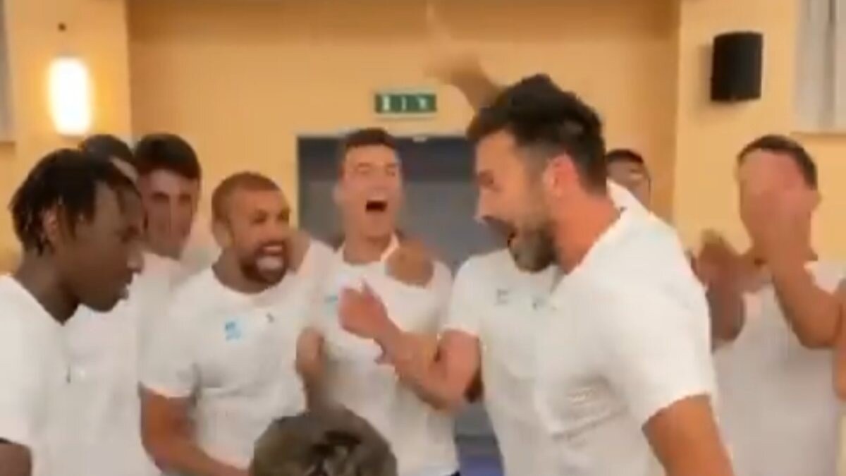 Soyunma odasında zaman zaman eğlenen Buffon, takım arkadaşlarıyla 'Taş kağıt makas' oyununu oynadı.
