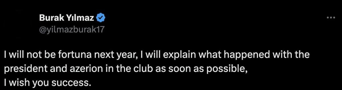 "Gelecek sezon Fortuna Sittard kulübünde olmayacağım. Başkan ile birlikte neler yaşandığını kısa süre içerisinde açıklayacağım."