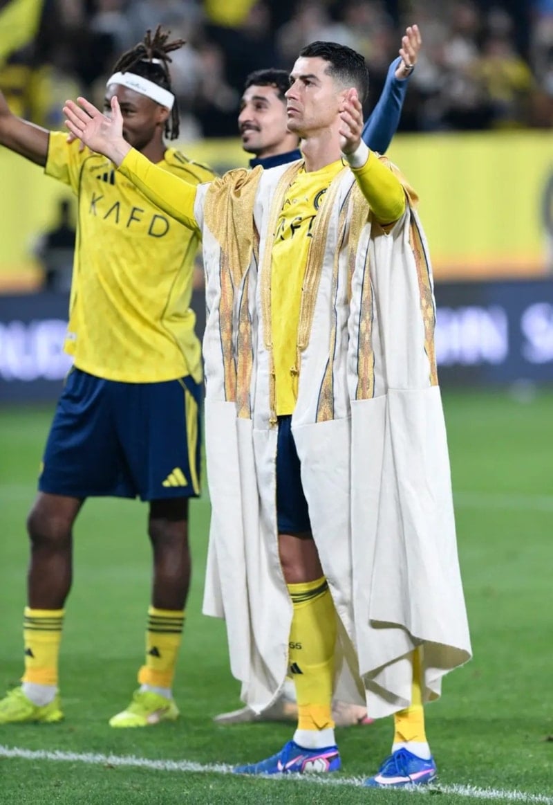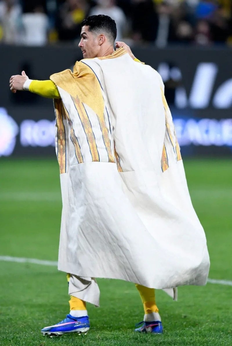 Cristiano Ronaldo, Al Nassr'ın kazandığı maçın ardından ülkenin geleneksel kıyafeti olan "bisht"i giydi. Yıldız isim, "Daha önce birçok kez söylediğim gibi, ben Suudi Arabistanlıyım" açıklamasını yaptı.