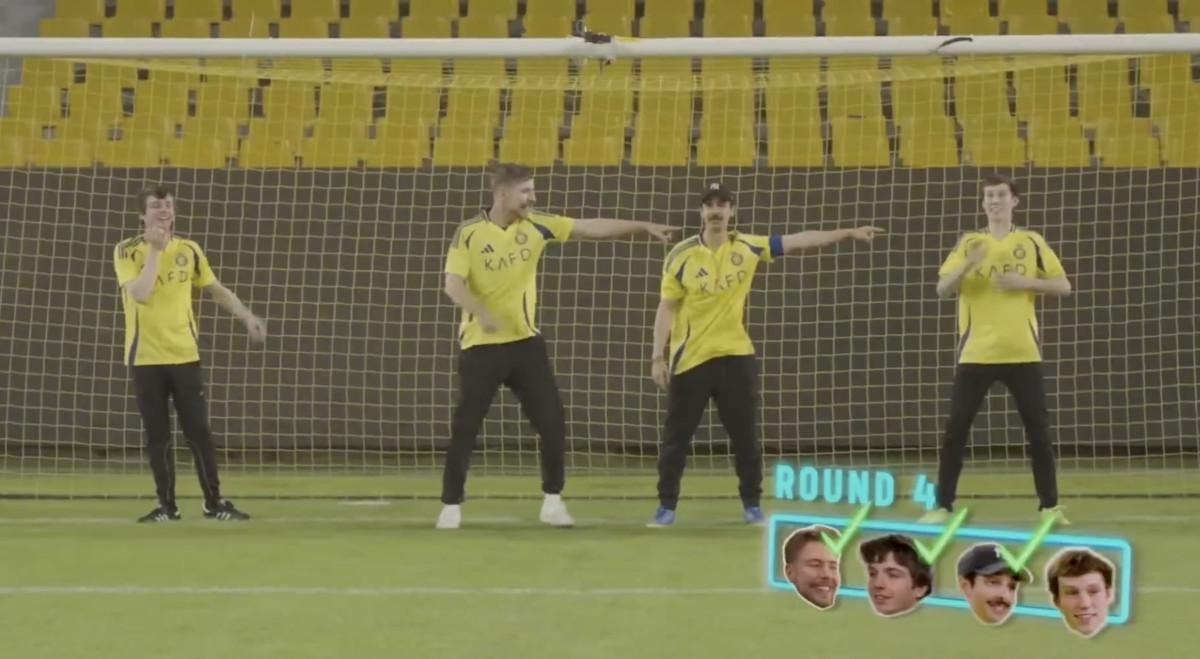 Kendi kanalında MrBeast'in de yer aldığı "Ronaldo'yu durdurmak için kaç kaleci gerekir?" başlıklı videoda Portekizli yıldız, ezeli rakibi Lionel Messi'ye takılmadan geçemedi.