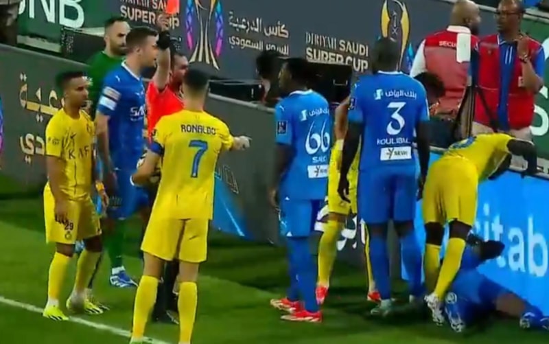 Suudi Arabistan Süper Kupası yarı final maçında Al Hilal, Al Nassr'ı 2-1 mağlup etti ve finale yükseldi. Karşılaşmada kırmızı kart gören Cristiano Ronaldo'nun sonrasında hakeme yaptığı hareket büyük ses getirdi.