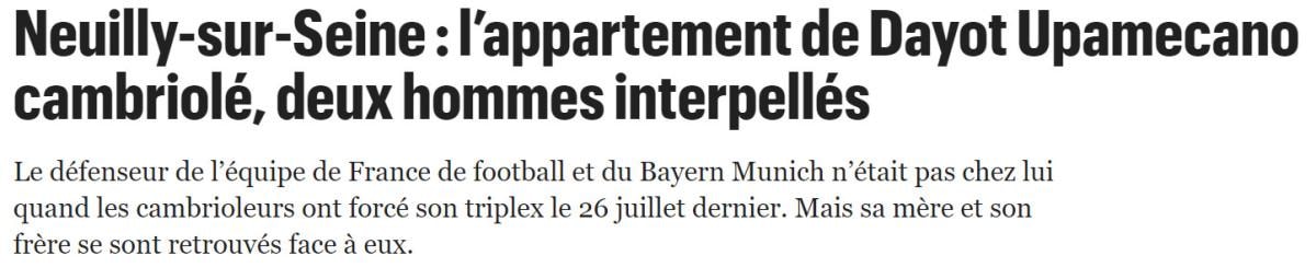 Ayrıca, Dayot Upamecano'nun soygun sırasında evde olmadığı kaydedildi. Öte yandan olaya karışan iki şüphelinin gözaltına alındığı ifade edildi.