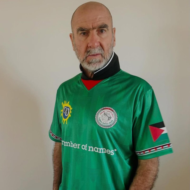 Cantona, sosyal medya hesabından yaptığı paylaşımda, Beytüllahim’deki Aida mülteci kampının takımı Lajee Celtic Club’ın formasını giyerek destek mesajı verdi.