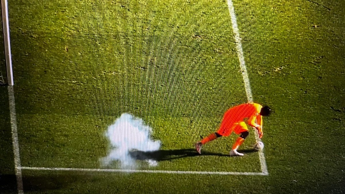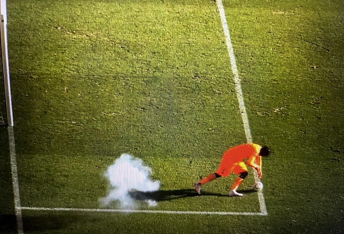 Maçın 90. dakikasında Clermont kalecisi Mory Diaw'a tribünlerden atılan havai fişek isabet etti.