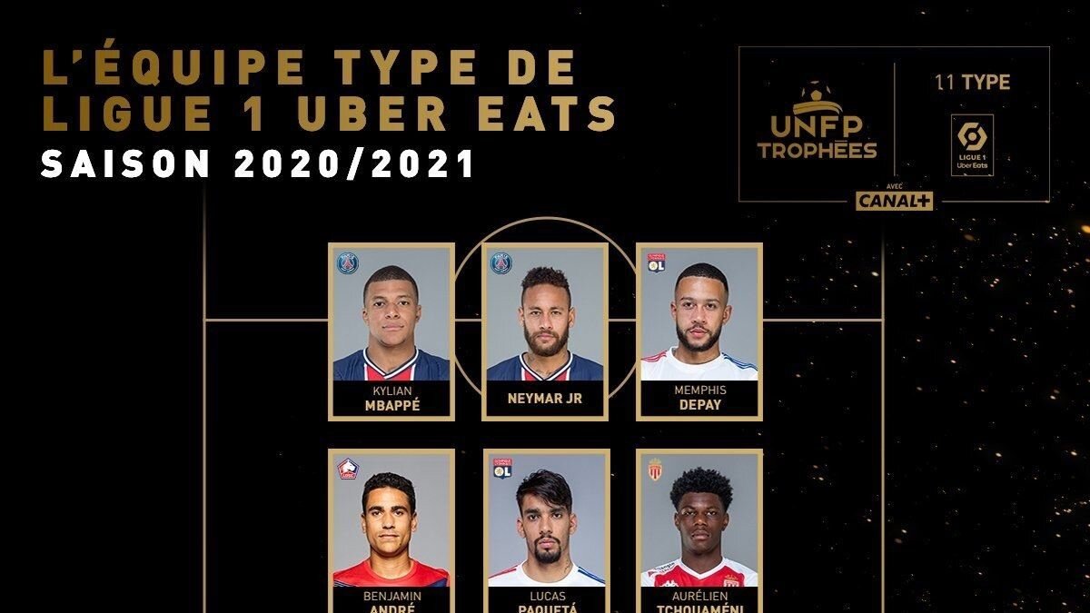 LIGUE 1'İN SEÇTİĞİ YILIN 11'İ: Navas (PSG), Reinildo (Lille), Kimpembe (PSG), Marquinhos (PSG), Clauss (Lens), Tchouameni (Monaco), Andre (Lille), Paqueta (Lyon), Depay (Lyon), Mbappe (PSG), Neymar (PSG).