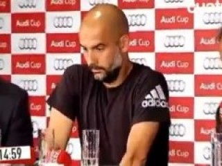 Bayern Münih takımının teknik direktörü Pep Guardiola'nın basın toplantısındaki tuhaf hareketleri dikkat çekti.