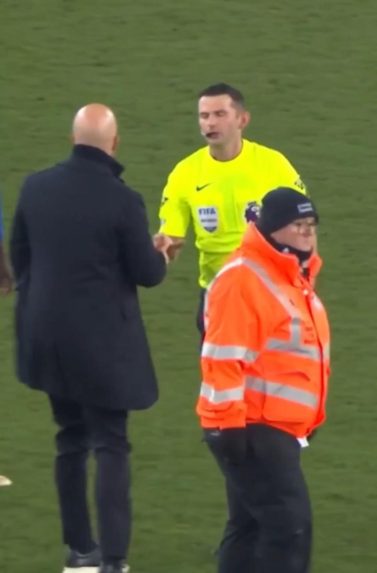 Hakem kararlarının tartışmalara neden olduğu maçın ardından soluğu hakem Michael Oliver'ın yanında alan Liverpool Teknik Direktörü Arne Slot, hakemin elini sert biçimde sıktığı gerekçesiyle kırmızı kartla cezalandırıldı.