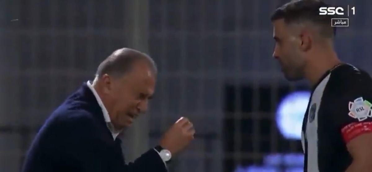 Müsabakanın 90+7. dakikasında attığı golle Al Shabab'a galibiyeti getiren Abderazak Hamdallah, Fatih Terim'e su şakası yaptı.