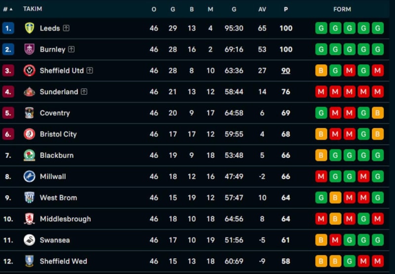 Championship'te daha önce Leeds United ve Burnley, Premier Lig'e yükselmeyi garantilemişti.