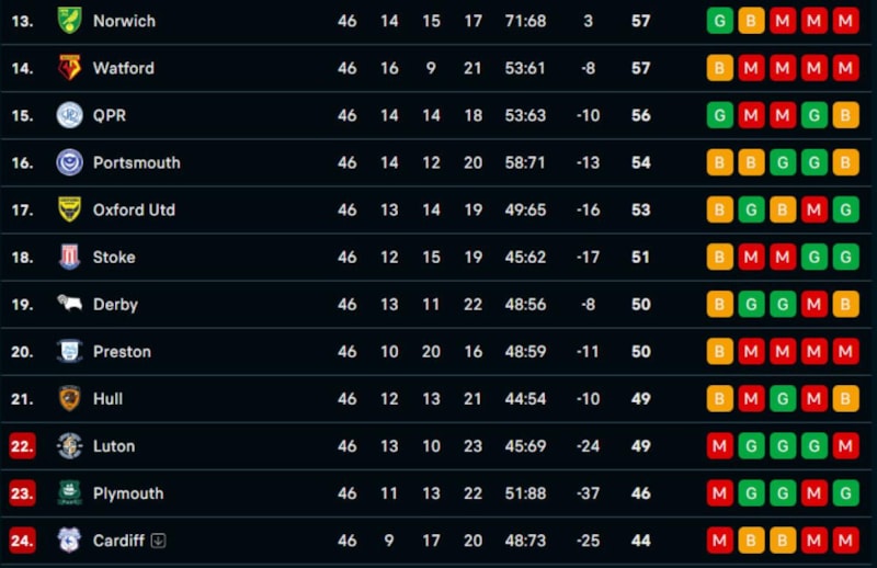 Haftaya Hull'un üstünde giren Luton Town ise West Bromwich deplasmanında 5-3 yenildi ve Hull ile aynı puanla küme düştü.