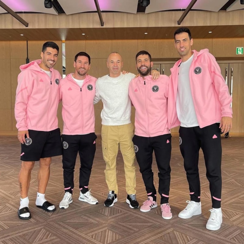 Barcelona'nın efsane futbolcuları Luis Suarez, Jordi Alba, Sergio Busquets ve Lionel Messi'nin bulunduğu Inter Miami kampını ziyaret eden Andres Inıesta, eski takım arkadaşlarıyla unutulmaz bir fotoğrafa imza attı.