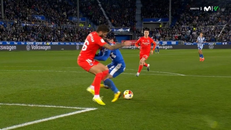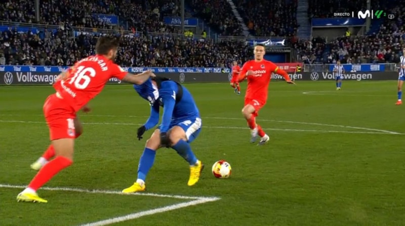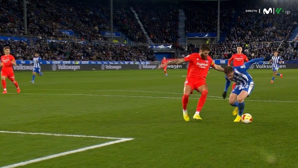 Karşılaşmanın ikinci yarısında Real Sociedad savunmacısı Duje Caleta-Car, ceza sahası içinde Alavesli Toni Martinez'in formasını çekti.