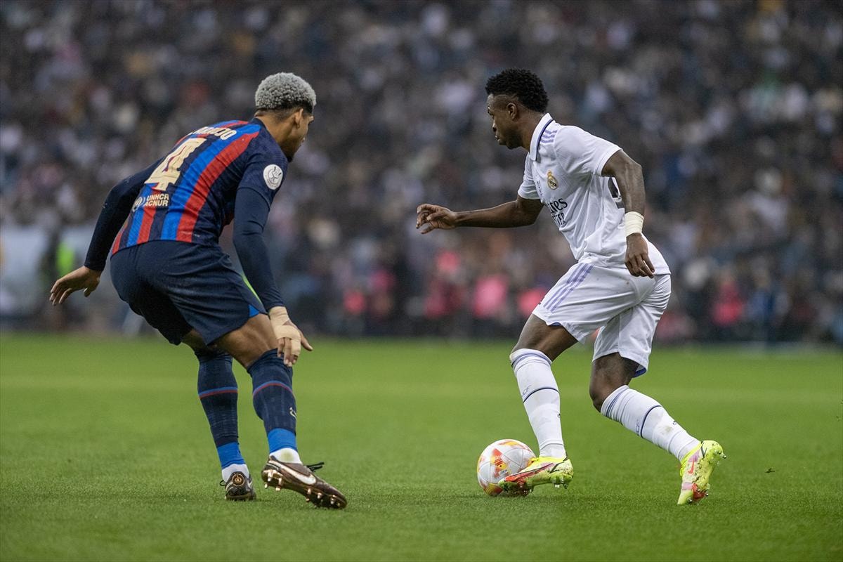 Suudi Arabistan'ın başkenti Riyad'daki Kral Fahd Stadyumu'nda oynanan karşılaşmanın ilk yarısını Barcelona, 33. dakikada Gavi ve 45. dakikada Robert Lewandowski'nin golleriyle 2-0 önde kapattı.