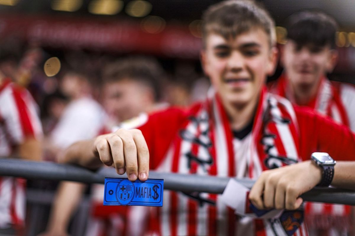 Bilbao taraftarları, üzerinde "Barcelona Mafya" yazan sahte paraları sahaya atarken, maç boyunca "Barça kümeye" tezahüratlarında bulundu.