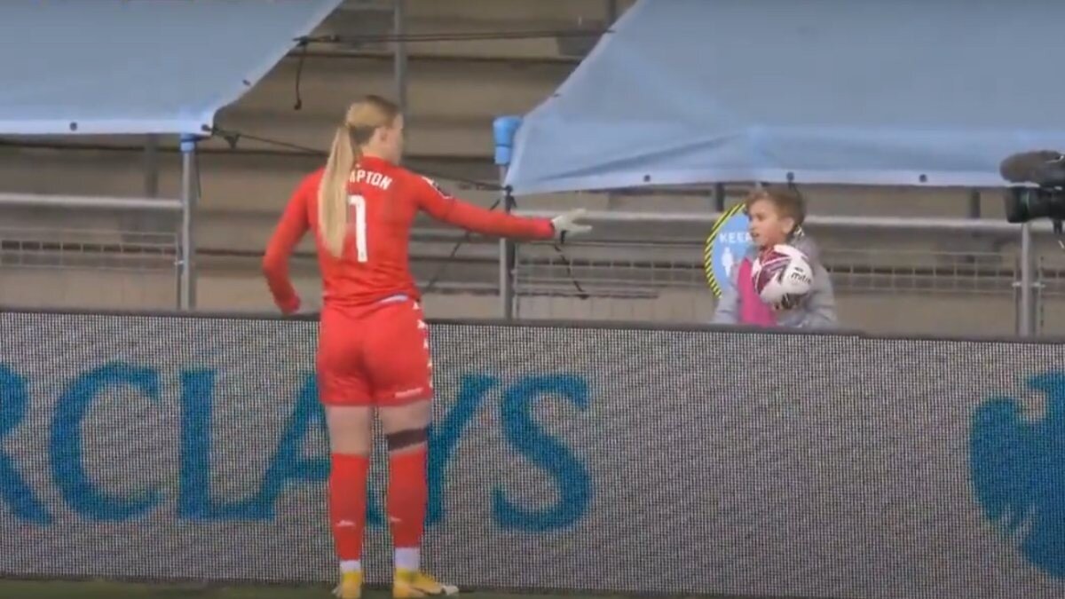 Kadınlar futbolunda ilginç bir olay yaşandı. Manchester City ve Aston Villa karşılaşmasında ilk yarının bitimine saniyeler kala kaleci Hannah Hampton'un top toplayıcıyla yaşadığı diyalog sosyal medyanın gündemine oturdu.
