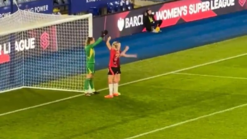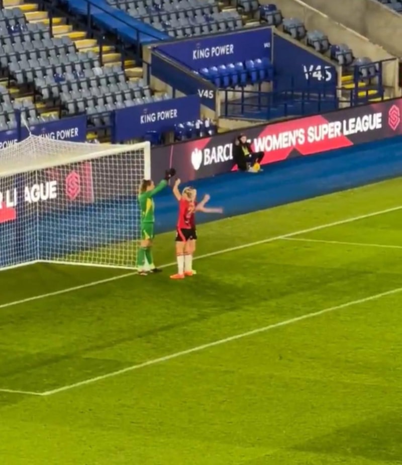 Leicester City ve Manchester United arasında oynanan kadınlar futbol müsabakasında ise ilginç bir an yaşandı.