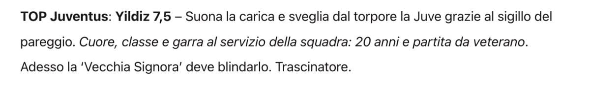 Öte yandan Kenan Yıldız'ın attığı beraberlik golü Juventus'u ayağa kaldırırken, İtalyan basını maçın ardından Türk futbolcu için övgü dolu yorumlar yaptı.