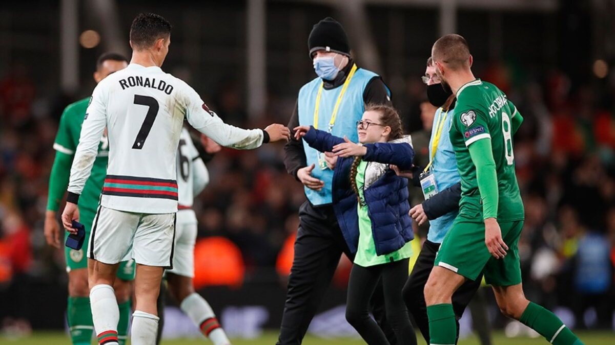 Dublin'deki Aviva Stadyumu'ndaki son düdükle birlikte güvenlikten kurtulan küçük taraftar, doğruca Cristiano Ronaldo'ya koştu. Hayranını geri çevirmeyen Portekiz kaptanı, gence formasını hediye etti.