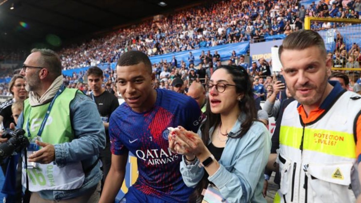 Bu karşılaşmanın öncesinde ise talihsiz bir an yaşandı. Maç öncesi ısınmada PSG'nin yıldızı Kylian Mbappe'nin çektiği şut, tribündeki kadın taraftarın yüzüne geldi. Mbappe, kanlar içinde kalan kadının yanına gitti ve sağlık ekipleri ilk müdahalede bulundu.