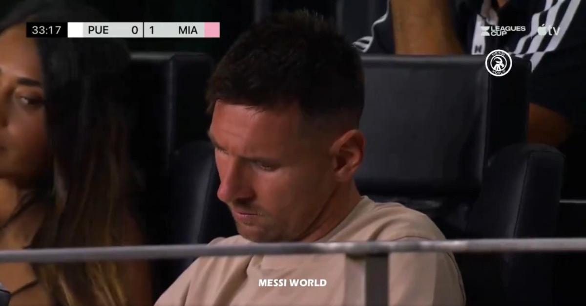 Kuzey & Orta Amerika Lig Kupası'nda Puebla ile karşı karşıya gelen Inter Miami'de Lionel Messi, bileğindeki sakatlık nedeniyle tribündeydi.