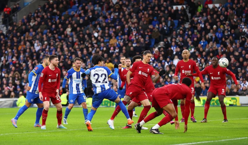Liverpool, Brighton karşısında 90+2'de yediği son dakika golüyle 2-1 mağlup oldu ve FA Cup'ta elendi.