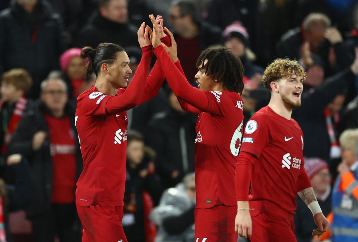 Ev sahibi ekibe galibiyeti getiren golleri; 43 ve 50. dakikalarda Cody Gakpo, 47 ve 75. dakikalarda Darwin Nunez, 66 ve 83. dakikalarda Muhammed Salah, 88. dakikada Firmino kaydetti.
