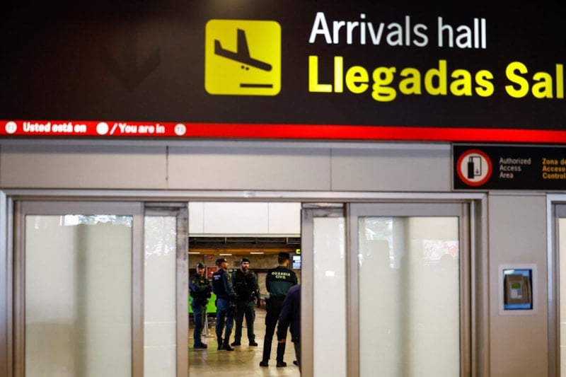 46 yaşındaki Rubiales'in gelişini görüntülemek için havalimanı terminalinin çıkış kapısında kalabalık bir basın grubu bekledi.