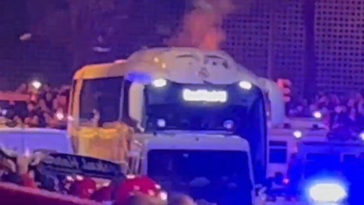 Real Madrid otobüsü, kısa süre içinde stadyuma girerken otobüsün camlarında çatlaklar olduğu göze çarptı.