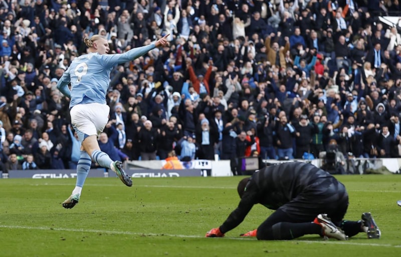 Manchester City, 27. dakikada Erling Haaland ile 1-0 öne geçti. Norveçli oyuncu, bu golüyle birlikte Premier Lig'de 48 maçta 50 gole ulaştı ve bu sayıya en hızlı ulaşan oyuncu olarak rekor kırdı.