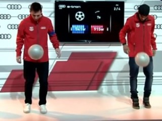 İki yıldız topla hünerlerini sergilerken 60 saniye içerisinde topa en fazla ve en güçlü dokunuşları yapan Messi takım arkadaşı Neymar'ı mağlup etmeyi başardı.