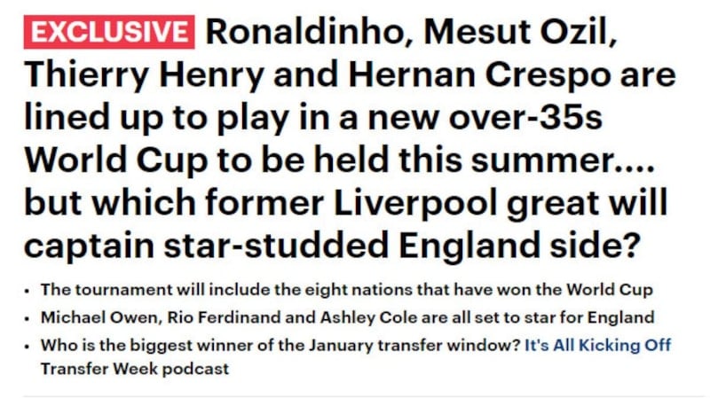 Haberin detayında FIFA Dünya Kupası'nın geçmiş şampiyonları İngiltere, Arjantin, Brezilya, Fransa, Almanya, İtalya, İspanya ve Uruguay'ın katılacağı sekiz takımlı, özel turnuvada Dünya Kupası tarihine adını yazdırmış efsane isimler forma giyecek.