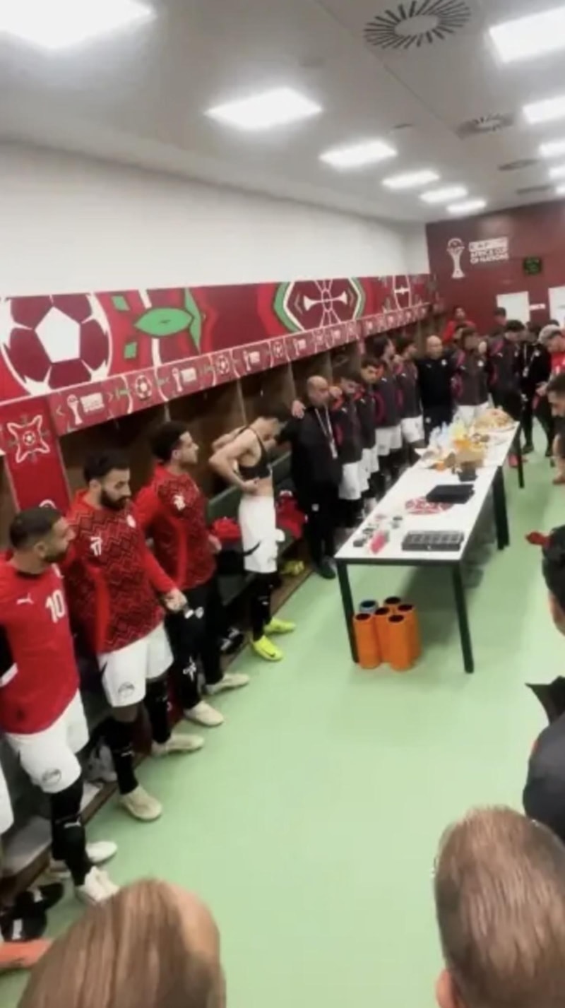 Mısırlı futbolcular maç öncesinde soyunma odasında Kuran-ı Kerim'den ayetler okuyarak dua etti.'