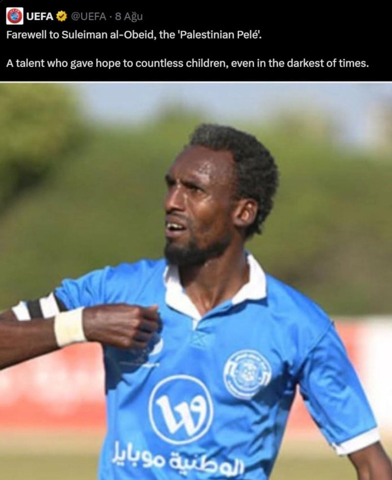 Gazze doğumlu, evli ve 5 çocuğu bulunan 41 yaşındaki Al-Obaid, Filistin futbolu tarihinin en parlak yıldızlarından biri olarak gösteriliyordu.
