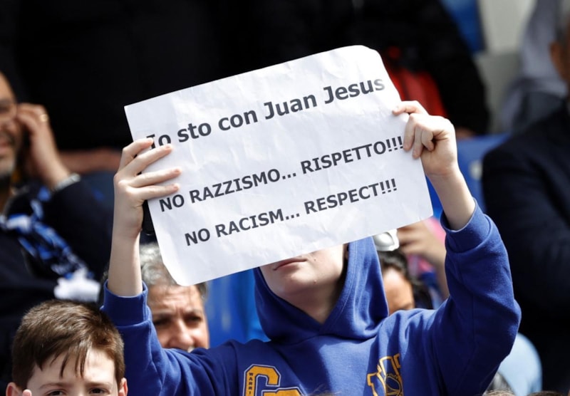 Napoli taraftarları da Juan Jesus'a ırkçı ifadeler sarf ettiği ileri sürülen ve federasyona bağlı spor hakiminin kanıt yetersizliğinden ceza vermediği Acerbi aleyhinde tezahüratlarda bulunurken, tribünlerde de "Irkçılığa hayır" yazılı pankartlar yer aldı.