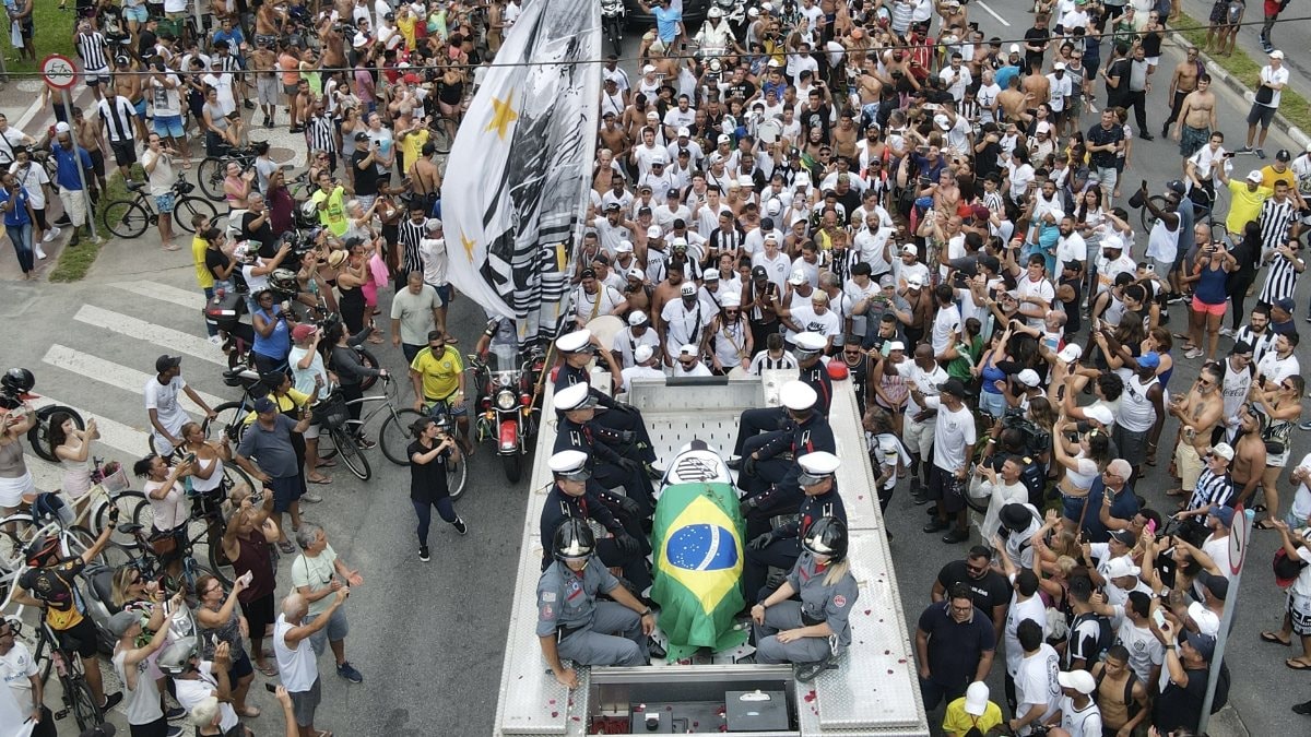19 yıl formasını giydiği Santos kulübüne ait stadyumunda, Pele’nin naaşı halkın ziyareti için 24 saat açık kaldı.