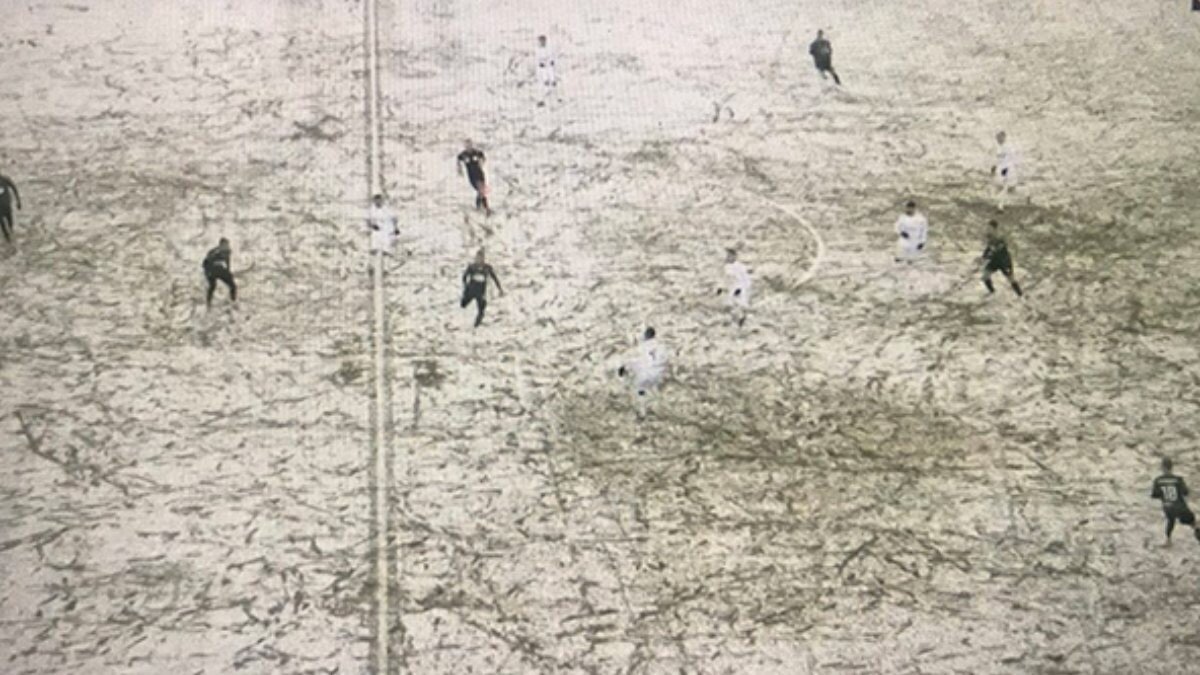 Bu ilginç görüntü sosyal medyada gündem olurken, mücadele ise 1-1 sona erdi.