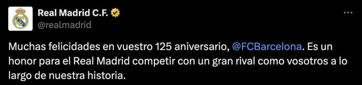 Barça'nın ezeli rakibi Real Madrid, sosyal medya hesabından konuya dair olarak bir paylaşım gerçekleştirdi.