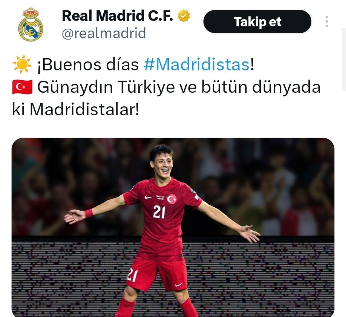 Real Madrid'in Arda Güler'i duyurduğu tweeti en çok etkileşim alan gönderi olarak tarihe geçerken, İspanyol kulübü günaydın mesajını da Türkçe attı.