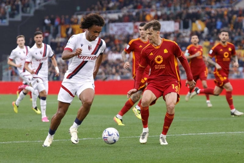 Bu sezonun Serie A'ya damga vuran oyuncularında Joshua Zirkzee, ligdeki 11. golünü Roma ağlarına 45. dakikada attı ve ilk yarının skorunu belirledi.