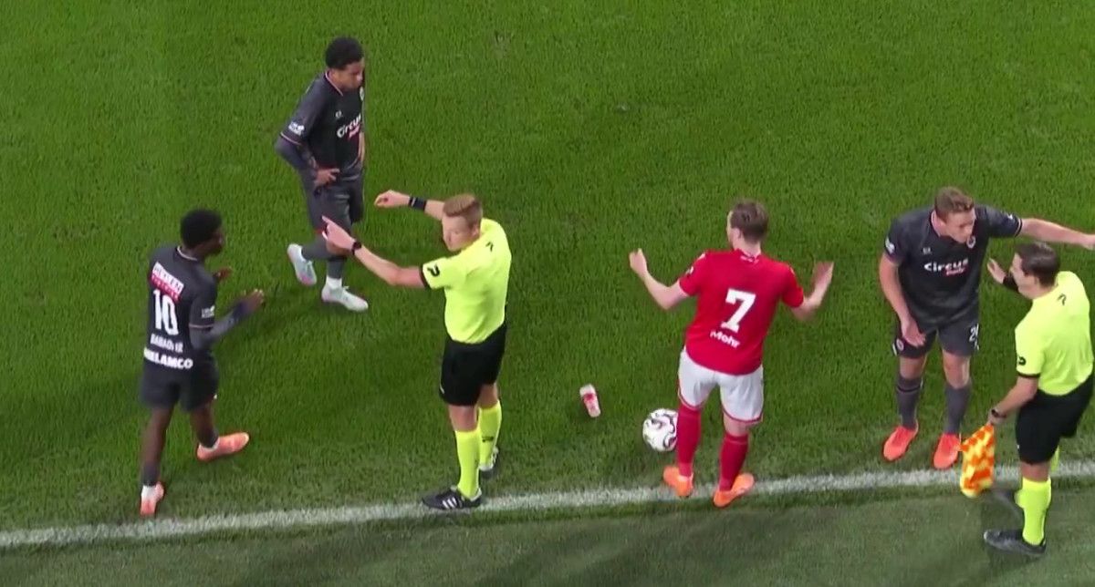 Belçika 1. Ligi'ndeki (Jupiler Pro League) Standard Liege - Antwerp maçı, sahaya atılan maddenin hakeme isabet etmesi sebebiyle tatil edildi.
